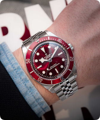 Die Black Bay 58 Burgundy zieht mit ihrem satten, tief burgunderroten Zifferblatt und der Lünette sofort alle Blicke auf sich. Dieses Rot ist nicht irgendein Rot; es ist ein sorgfältig gewählter Farbton, der Raffinesse und einen Hauch von Vintage-Charme ausstrahlt. Das Sonnenschliff-Finish des Zifferblatts spielt mit dem Licht und erzeugt einen dynamischen visuellen Effekt, der sowohl elegant als auch sportlich ist.